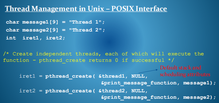 pthread Thread Creation pthread_create()函数创建新线程。该函数包含四个参数:- An identifier for the thread management structure, of type pthread_t