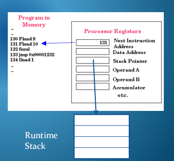 运行时堆栈是一个内存区域,它本质上与处理器指令相链接,用于管理调用/返回机制和其他与执行相关的目的。 该堆栈包含与当前执行流相关的上下文信息