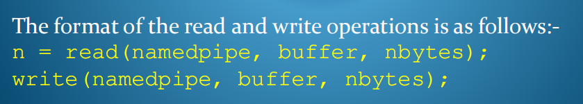 2,创建 在当前目录中创建一个名为“mypipe”的命名管道文件 | mknod(“mypipe", 010777, 0); | |-----------------------------|