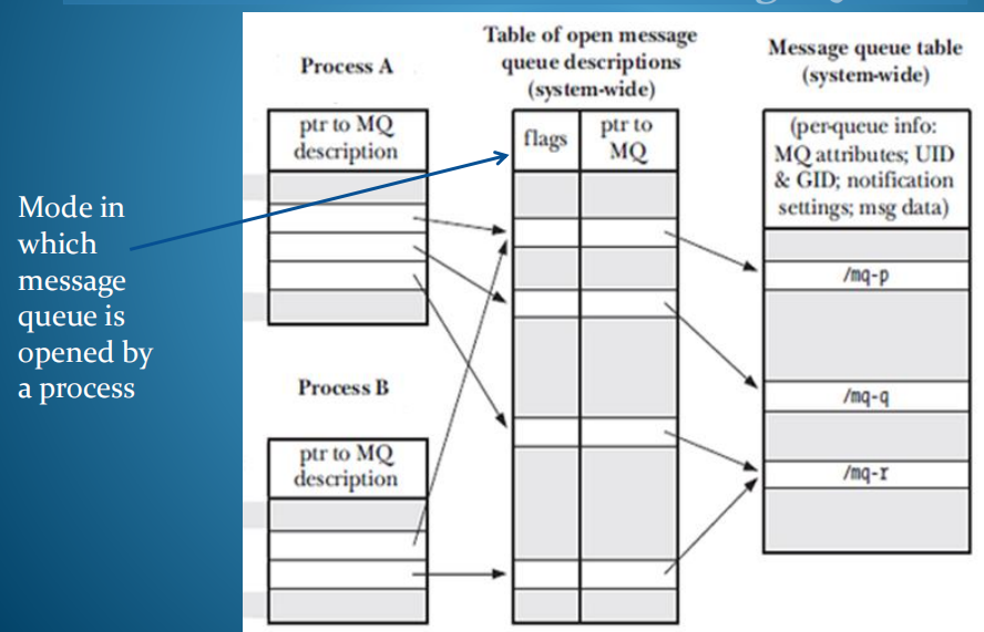 2,操作系统持久独立地维护消息队列,直到它被用户进程明确解除链接(销毁)或系统关闭为止。
