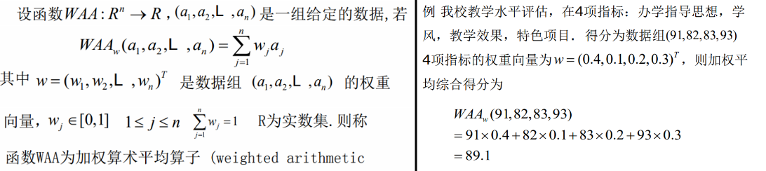 二、信息集结方法 加权算术平均(WAA)算子、加权几何平均(WGA)算子:有序加权平均(OWA)算子。。。
